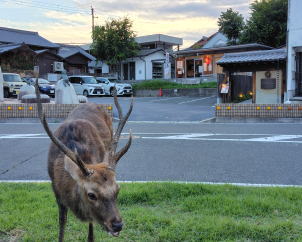 お店の前に鹿くんが来ました。